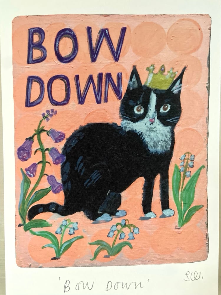 An A5 size art print on thick watercolour paper taken from an original painting on wood by Sally Welchman aka moggshop.