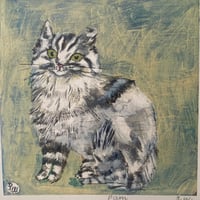 ON SALE! Small square art print-‘Pam’ (fluffy grey cat)